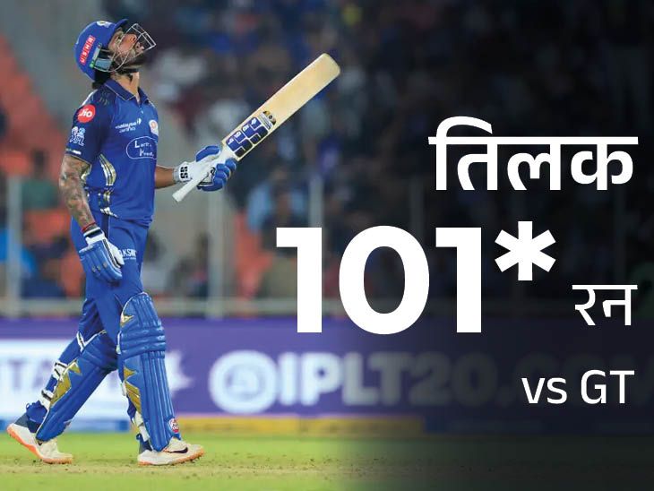 मुंबई इंडियंस ने IPL 2026 के 30वें मैच में गुजरात टाइटंस को 99 रन से हरा दिया। अहमदाबाद में तिलक वर्मा ने 45 गेंदों में शतक लगाकर सनथ जयसूर्या के रिकॉर्ड की बराबरी कर ली। यह इस सीजन की सबसे तेज सेंचुरी भी रही। जसप्रीत बुमराह ने पहली ही गेंद पर विकेट लिया। पढिए MI Vs GT मैच के टॉप मोमेंट्स और रिकॉर्ड्स… 1. तिलक वर्मा का 45 बॉल पर शतक मुंबई इंडियंस के लिए IPL में सबसे तेज शतक के मामले में तिलक वर्मा ने सनथ जयसूर्या की बराबरी की। दोनों ने 45-45 गेंदों में शतक जड़ा। इस लिस्ट में कैमरन ग्रीन (47 गेंद) और सूर्यकुमार यादव (49 गेंद) भी हैं। तिलक गुजरात के खिलाफ मुंबई के लिए शतक लगाने वाले दूसरे बल्लेबाज बने। उनसे पहले सूर्यकुमार यादव ने 2023 में वानखेड़े में नाबाद 103 रन बनाए थे। तिलक ने इस सीजन की फास्टेस्ट सेंचुरी भी लगाई। चेन्नई के संजू सैमसन ने 52 और मुंबई के क्विंटन डी कॉक ने 53 बॉल पर शतक लगाया था। 2. मुंबई की चौथी सबसे बड़ी जीत मुंबई इंडियंस ने 99 रन से जीत दर्ज करते हुए IPL इतिहास में अपनी चौथी सबसे बड़ी जीत हासिल की। टीम की सबसे बड़ी जीत 2017 में दिल्ली डेयरडेविल्स के खिलाफ 146 रन से आई थी। यहां से टॉप-6 मोमेंट्स 1. दानिश और कृष का टी-20 डेब्यू मुंबई इंडियंस के लिए दो नए खिलाड़ियों ने डेब्यू किया। दानिश मलेवार ने पहला मुकाबला खेला, वहीं हाल ही में सपोर्ट बॉलर के रूप में शामिल कृष भगत को भी प्लेइंग इलेवन में जगह मिली। दोनों ने इससे पहले कोई टी-20 मैच नहीं खेला था, यानी यह उनके प्रोफेशनल टी-20 करियर का पहला मैच रहा। 2. रबाडा ने अपनी ही बॉल पर लपका डी कॉक का कैच चौथे ओवर में कगिसो रबाडा ने क्विंटन डी कॉक को कॉट एंड बोल्ड किया। रबाडा ने करीब 150 की रफ्तार से शॉर्ट बॉल फेंकी। डी कॉक शॉट मारने में संतुलन खो बैठे। बॉल टॉप एज लेकर हवा में गई और रबाडा ने खुद कैच लपक लिया। 3. रबाडा की 152 kmph की रफ्तार पर सूर्या क्लीन बोल्ड छठे ओवर में रबाडा ने सूर्यकुमार यादव को क्लीन बोल्ड किया। रबाडा ने 152.1 kmph की रफ्तार से बॉल फेंकी, जो पिच होकर अंदर आई। सूर्या ड्राइव के प्रयास में पेस से चकमा खा गए और बॉल स्टंप्स से टकरा गई। 4. आखिरी बॉल पर चौके से तिलक का शतक 20वें ओवर की आखिरी बॉल पर तिलक वर्मा ने चौका जड़कर IPL में पहला शतक पूरा किया। प्रसिद्ध कृष्णा ने धीमी और शॉर्ट बॉल फेंकी। तिलक ने डीप स्क्वायर लेग में गैप ढूंढकर चौका लगाया। 5. बुमराह ने साई सुदर्शन को कैच कराया जसप्रीत बुमराह ने पहली ही बॉल पर विकेट लिया। उन्होंने गुजरात के इन-फॉर्म बल्लेबाज साई सुदर्शन को कृष्ण भगत के हाथों कैच आउट कराया। बुमराह ने फुल लेंथ बॉल फेंकी जो बाहर निकली। सुदर्शन ने बिना पैरों के मूवमेंट के कवर्स के ऊपर से स्लाइस करने की कोशिश की, लेकिन गेंद बल्ले के निचले हिस्से पर लगकर कवर-पॉइंट पर खड़े फील्डर के 
