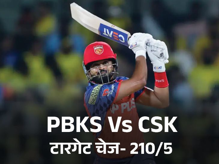 IPL के 7वें मैच में पंजाब किंग्स ने चेन्नई सुपर किंग्स को 5 विकेट से हरा दिया। चेपॉक में टॉस हारकर पहले बल्लेबाजी करते हुए चेन्नई ने 5 विकेट पर 208 रन बनाए। टीम के लिए आयुष म्हात्रे ने 73 रन की पारी खेली, हालांकि उन्हें दो बार जीवनदान भी मिला। जवाब में पंजाब ने 18.4 ओवर में 5 विकेट खोकर लक्ष्य हासिल कर लिया। इस जीत के साथ पंजाब ने टी-20 क्रिकेट में भारत का वर्ल्ड रिकॉर्ड तोड़ते हुए 9वीं बार 200+ रनचेज किया। वहीं चेन्नई ने इस मैच में 36वीं बार 200+ स्कोर बनाया। PBKS Vs CSK मैच के मोमेंट्स और रिकॉर्ड्स… 1. पंजाब ने 9वीं बार 200+ रनचेज किया पंजाब किंग्स ने टी-20 क्रिकेट में भारत का रिकॉर्ड तोड़ दिया। टीम ने 200+ रनचेज के मामले में 9वीं जीत दर्ज की। इससे पहले भारत की टीम ने 8 बार 200+ रनचेज किया था। ऑस्ट्रेलिया ने 7 और मुंबई इंडियंस ने 6 बार यह कारनामा किया है। 2. पंजाब किंग्स का दूसरा सबसे बड़ा रनचेज पंजाब किंग्स ने अपना दूसरा सबसे बड़ा रनचेज किया। टीम ने 210 रन का टारगेट 18.4 ओवर में हासिल किया। टीम का सबसे बड़ा रनचेज 262 रन का है। इसे पंजाब ने 2024 में ईडन गार्डन्स में कोलकाता नाइट राइडर्स के खिलाफ हासिल किया था। 3. चेन्नई ने IPL में सबसे ज्यादा 200+ स्कोर बनाए चेन्नई सुपर किंग्स IPL में सबसे ज्यादा 200+ स्कोर बनाने वाली टीम बन गई। टीम ने अब तक 36 बार 200 का आंकड़ा पार किया है। इसके बाद रॉयल चैलेंजर्स बेंगलुरु 35 बार इस स्कोर तक पहुंची है। यहां से मैच के टॉप-8 मोमेंट्स… 1. चौका लगाने के बाद संजू आउट दूसरे ओवर में चेन्नई का पहला विकेट गिरा। ओवर की छठी गेंद जेवियर बार्टलेट ने ऑफ स्टंप के बाहर फेंकी। संजू सैमसन ड्राइव खेलने के लिए पीछे हटे, लेकिन गेंद की मूवमेंट को कवर नहीं कर सके और बल्ले का हल्का किनारा लग गया। गेंद सीधे विकेटकीपर प्रभसिमरन सिंह के पास गई, जिन्होंने आसान कैच लपक लिया। संजू 7 रन बनाकर आउट हुए। 2. आयुष की सिक्स से फिफ्टी नौवें ओवर में चेन्नई के बल्लेबाज आयुष म्हात्रे ने सिक्स लगाकर अर्धशतक पूरा किया। ओवर की पहली गेंद मार्कस स्टोयनिस ने धीमी फेंकी। म्हात्रे ने आगे बढ़कर शॉट खेला और गेंद को लॉन्ग-ऑफ के ऊपर से सिक्स के लिए भेज दिया। 3. म्हात्रे का वैशाख और शशांक से कैच छूटा मिडिल ओवर्स में चेन्नई के बल्लेबाज आयुष म्हात्रे को दो बड़े जीवनदान मिले। 10वें ओवर की दूसरी गेंद पर युजवेंद्र चहल ने लेग ब्रेक डाली, जिस पर म्हात्रे स्लॉग स्वीप खेलने गए, लेकिन गेंद बल्ले के ऊपरी किनारे से लगकर हवा में चली गई। वैशाख आगे दौड़ते हुए पहुंचे, डाइव भी लगाई, लेकिन गेंद हाथ में आने के बाद छिटक गई और कैच छूट गया। इसके बाद 12वें ओवर की चौथी गेंद पर चहल ने फिर मौका बनाया। उन्होंने गेंद को फ्लाइट देकर बल्लेबाज को बड़ा शॉट खेलने के लिए ललचाया। म्हात्रे आगे बढ़कर शॉट खेलने गए, लेक