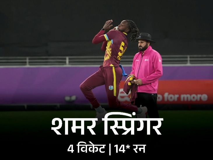 दुबई में खेले गए तीसरे टी-20 मुकाबले में वेस्टइंडीज क्रिकेट टीम ने अफगानिस्तान को 15 रन से हराकर सीरीज में क्लीन स्वीप होने से खुद को बचा लिया। इस जीत के हीरो रहे शमर स्प्रिंगर, जिन्होंने 19वें ओवर में हैट्रिक लेकर मैच का पूरा रुख पलट दिया और उन्हें मैन ऑफ द मैच चुना गया। शमर स्प्रिंगर ने गेंद और बल्ले दोनों से अहम योगदान दिया। उन्होंने अपने 4 ओवर में सिर्फ 20 रन देकर 4 विकेट झटके, वहीं बल्लेबाजी में नाबाद 14 रन बनाकर टीम के स्कोर को मजबूती दी। हालांकि अफगानिस्तान ने पहले दो मुकाबले जीतकर पहले ही सीरीज अपने नाम कर ली थी, लेकिन तीसरे मैच में वेस्टइंडीज ने शानदार वापसी करते हुए जीत दर्ज की। 19वां ओवर बना टर्निंग पॉइंट