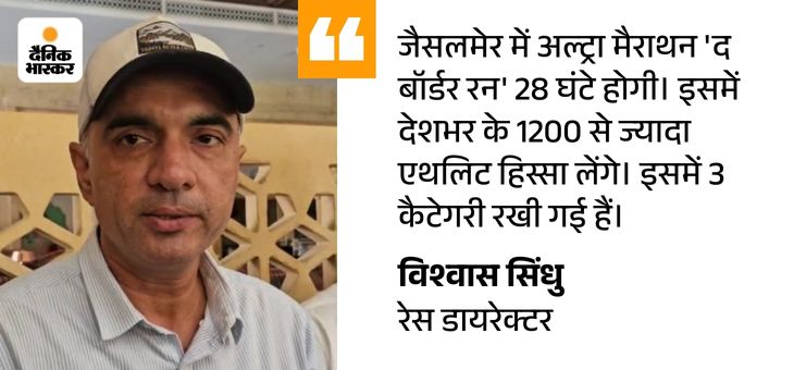 देश की सबसे कठिन अल्ट्रा मैराथन ‘द बॉर्डर रन’ जैसलमेर में होगी। इसमें देशभर से 1200 से अधिक एथलीट हिस्सा लेंगे। मैराथन 6-7 दिसंबर 2025 को लोंगेवाला बॉर्डर पर होगी। इसी पोस्ट पर साल 1971 के युद्ध में पाकिस्तान को शिकस्त मिली थी।