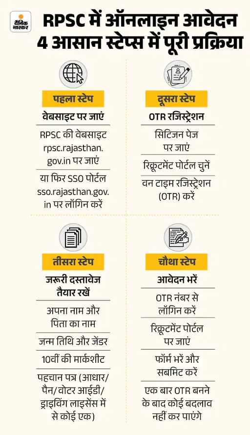 आयोग सचिव रामनिवास मेहता ने बताया- इन पदों के लिए ऑनलाइन आवेदन 26 नवंबर 2025 की रात 12 बजे तक किए जा सकेंगे। ऑफलाइन आवेदन स्वीकार नहीं किए जाएंगे। परीक्षा तिथि और एग्जाम सेंटर के संबंध में बाद में सूचित किया जाएगा।
