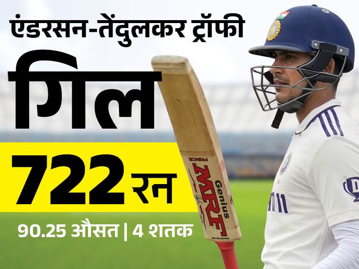 Shubman Gill became the highest run -scorer in the Test series against England. During the Anderson-Tendulkar Trophy, Gill has scored 722 runs in 8 innings of 4 matches so far, with his best score 269. He has scored four centuries in this series and has an average of 90.25.