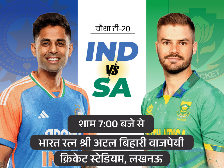 भारत और साउथ अफ्रीका के बीच खेली जा रही पांच मैचों की टी-20 सीरीज का चौथा मुकाबला आज लखनऊ में खेला जाएगा। टीम इंडिया सीरीज में 2-1 से आगे है। भारत ने पहला मैच 101 रन से जीता था, इसके बाद साउथ अफ्रीका ने मुल्लांपुर में खेले गए दूसरे मैच में 51 रन से जीतकर वापसी की, लेकिन तीसरे मैच में धर्मशाला में भारत ने 7 विकेट से जीत हासिल करते हुए फिर बढ़त बना ली।
