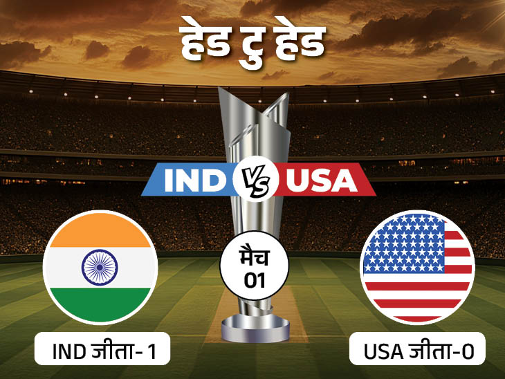 USA के खिलाफ भारतीय टीम का विक्ट्री रिकॉर्ड 100% है। बात अलग है कि दोनों टीमों के बीच अब तक एक ही टी-20 मैच खेला गया है। जो पिछले टी-20 वर्ल्ड कप में खेला गया था। उस मैच को भारत ने 7 विकेट से जीता था।
