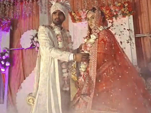 मेरठ की इंटरनेशनल जेवलिन थ्रोअर अन्नूरानी और किक बाक्सर साहिल भारद्वाज जीवनसाथी बन गए। स्टेज पर दोनों ने एक दूसरे के गले में वरमाला डाली। इसके बाद साहिल ने 10-10 के नोटों की दो गड्डियों को अन्नू के ऊपर से उछाल दीं।