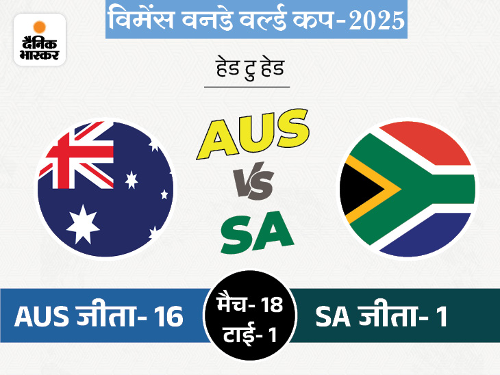 वर्ल्ड कप में ऑस्ट्रेलिया साउथ अफ्रीका को कभी नहीं हरा पाई विमेंस वर्ल्ड में ऑस्ट्रेलिया और साउथ अफ्रीका के बीच 8 मैच खेले गए हैं। सभी मुकाबले ऑस्ट्रेलिया ने जीते हैं। ओवरऑल वनडे की बात की जाए तो दोनों टीम के बीच 18 मुकाबले हुए हैं। इनमें 16 ऑस्ट्रेलिया के नाम रहें हैं। जबकि एक मैच साउथ अफ्रीका ने जीता है।