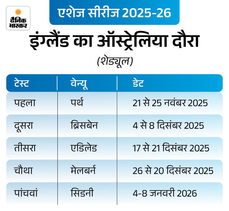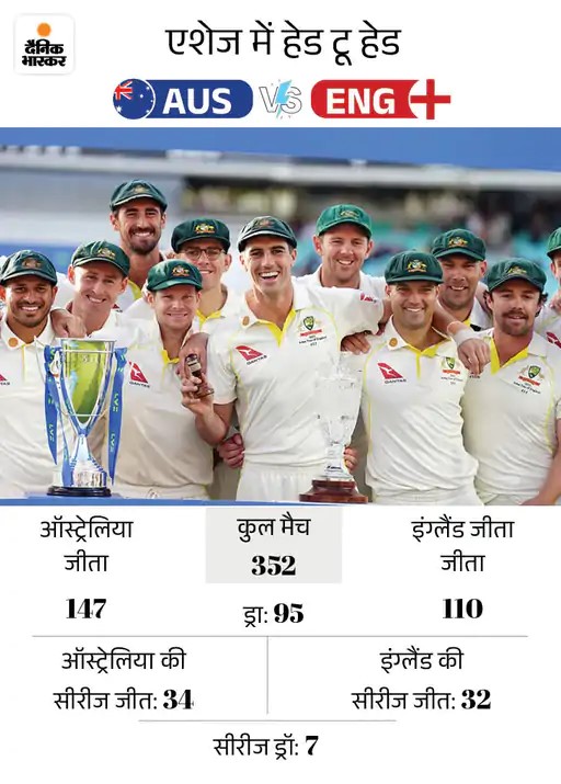 एशेज सीरीज की ट्रॉफी फिलहाल ऑस्ट्रेलिया के पास है। टीम ने 2021 के सीजन में 5 मैचों में से 4 जीते थे, जबकि एक मैच ड्रॉ रहा था। उसके बाद 2023 की सीरीज 2-2 से ड्रॉ रही थी।