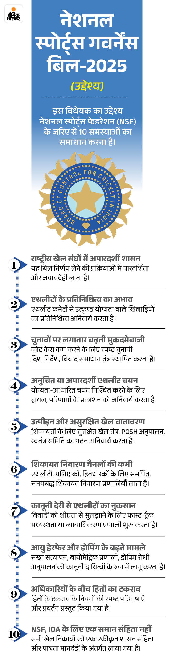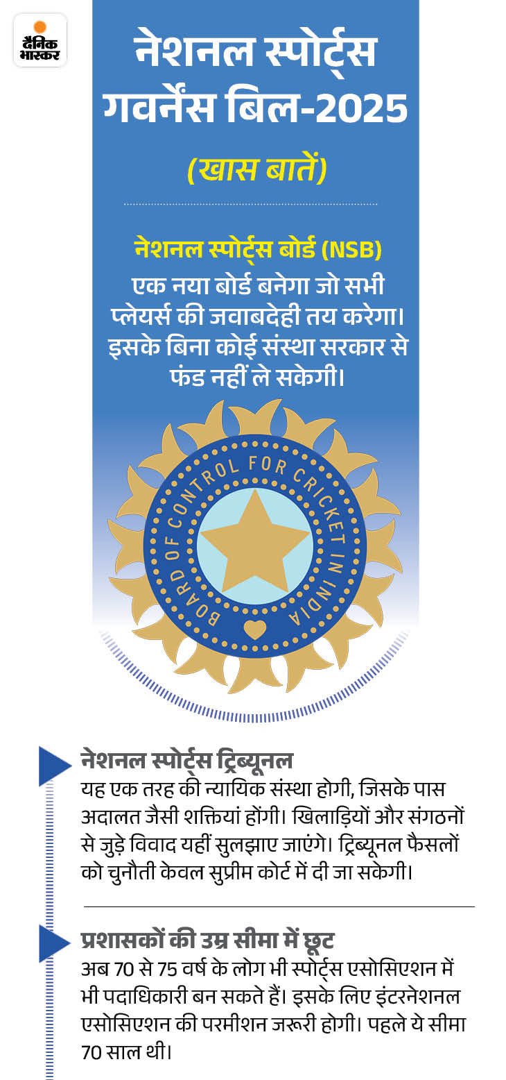 BCCI status BCCI earlier said that it would react after studying the bill. But once this bill becomes law, BCCI will have to register itself as a National Sports Federation (NSF). This is because cricket has now become an Olympic game and it will be included in the T20 format in 2028.