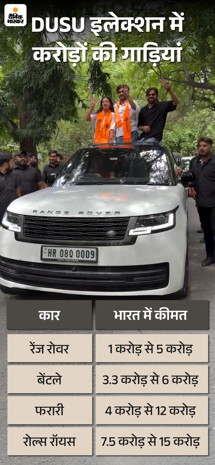 The Delhi High Court has expressed strong displeasure over the use of luxury trains like Bentley, Rolls Royce, Ferrari and JCB for campaigning in DUSU elections. The High Court said that the candidates did not learn any lesson from last year’s order. Last year too, the election results were stopped due to the election and damage to public property in the elections.