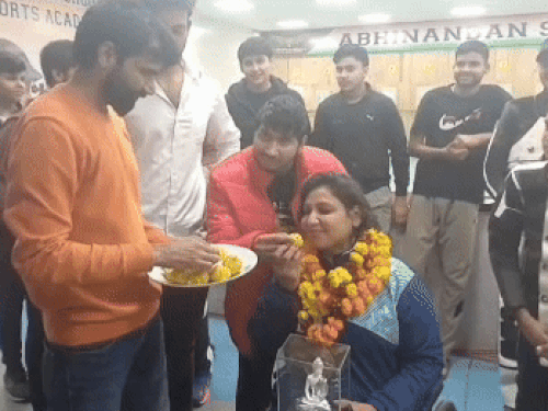 रोहतक में पैरा नेशनल शूटिंग चैंपियनशिप में मेडलिस्ट कविता पांचाल का मुंह मीठा करवाते हुए कोच संदीप। रोहतक की शूटर कविता पांचाल ने दिल्ली में चल रही छठी पैरा नेशनल शूटिंग चैंपियनशिप में शानदार प्रदर्शन करते हुए एक गोल्ड व एक ब्रॉन्ज मेडल हासिल कर जिले का नाम रोशन किया। पदक विजेता शूटर कविता पांचाल … Read more