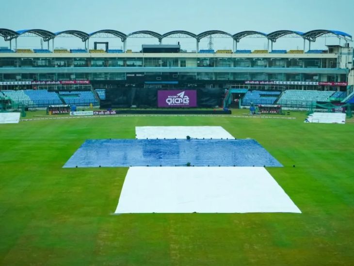 ग्राउंड स्टाफ ने मैदान को कवर कर दिया था।