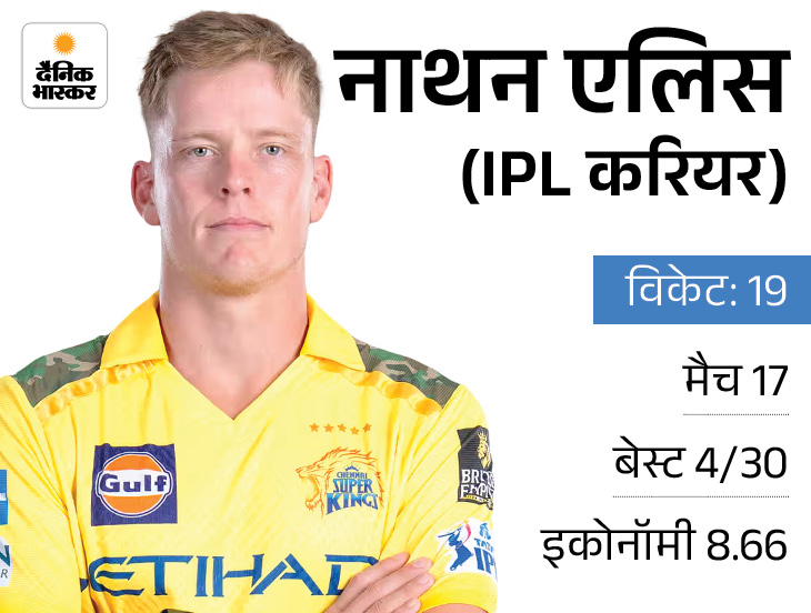 5 बार की चैंपियन चेन्नई सुपर किंग्स के तेज गेंदबाज नाथन एलिस हैमस्ट्रिंग इंजरी के कारण IPL 2026 से बाहर हो गए हैं। फ्रेंचाइजी के एक अधिकारी ने बताया कि 31 साल के एलिस IPL से बाहर हो चुके हैं, हालांकि उनके रिप्लेसमेंट को लेकर अभी कोई फैसला नहीं लिया गया है।