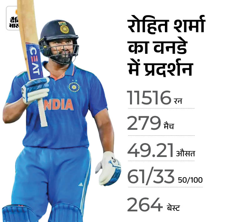 पिछले साल 650 रन बनाए 2025 में उन्होंने 14 पारियों में 650 रन बनाए। औसत 50 रहा और स्ट्राइक रेट 100 से ज्यादा। इस दौरान उनके बल्ले से दो शतक और चार अर्धशतक निकले, नाबाद 121 रन उनका सर्वश्रेष्ठ स्कोर रहा। वहीं उनके वनडे करियर की बात करें तो रोहित 3 डबल सेंचुरी लगाने वाले एकमात्र बैटर हैं। उन्होंने 279 मैचों में 11516 रन बनाए हैं।