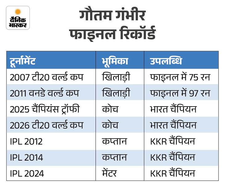 भारत के मुख्य कोच गौतम गंभीर ने हाल ही में टी-20 वर्ल्ड कप 2026 जीतकर अपना दूसरा ICC खिताब हासिल किया।