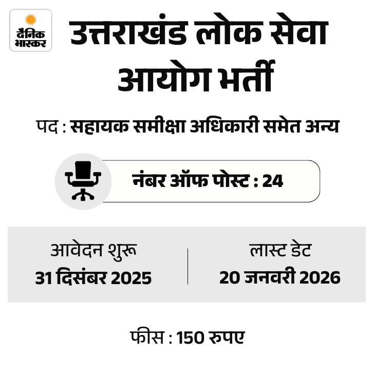 कैंडिडेट्स ऑफिशियल वेबसाइट psc.uk.gov.in पर जाकर आवेदन कर सकते हैं। इन पदों पर आवेदन करने की अंतिम तिथि 20 जनवरी, 2026 निर्धारित की गई है। इसके साथ ही उम्मीदवारों को 26 जनवरी से 04 फरवरी तक फॉर्म में करेक्शन करने का मौका दिया जाएगा।
