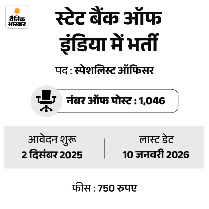 स्टेट बैंक ऑफ इंडिया ने अपनी SBI SO भर्ती 2026 को रिवाइज किया है। इसके तहत कुल वैकेंसी 996 से बढ़ाकर 1,046 कर दी गई हैं और ऑनलाइन आवेदन की आखिरी तारीख भी बढ़ा दी गई है।