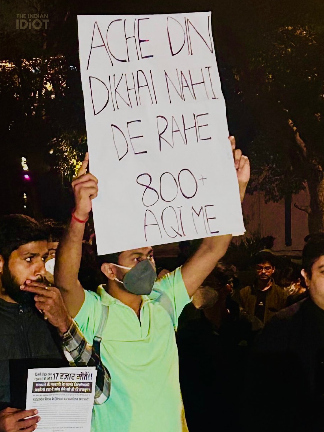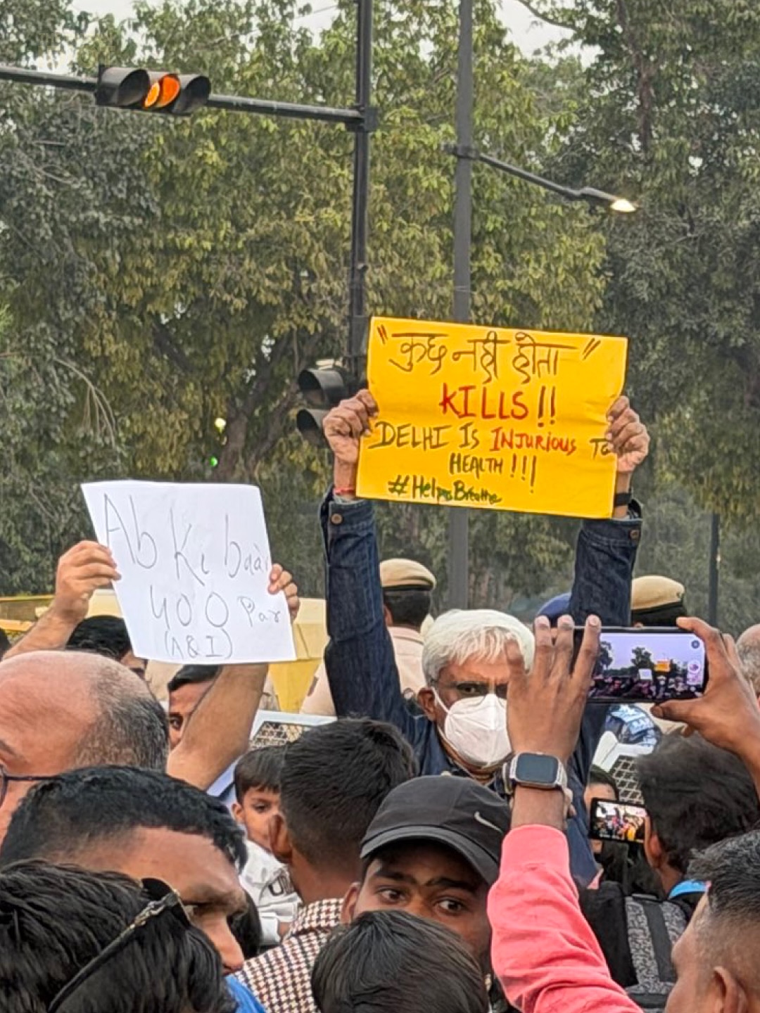 रविवार को दिल्ली में बढ़ते एयर पॉल्यूशन को लेकर युवाओं ने इंडिया गेट पर प्रदर्शन किया। देर रात पुलिस ने उन्हें डिटेन किया। पुलिस के अनुसार, ‘प्रदर्शनकारियों से हमने कहा कि वो प्रदर्शन के लिए जंतर-मंतर जा सकते हैं। जब वो नहीं माने तो उन्हें डीटेन करना पड़ा ताकि सड़क पर व्यवस्था बनी रह सके।’