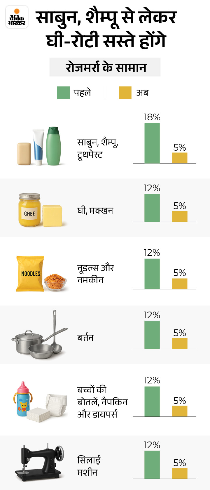 Due to the two slabs 5% and 18% instead of 4 of GST, it will also be cheap to common needs such as soap, shampoo, car. See what cheap and expensive will be in graphics here …