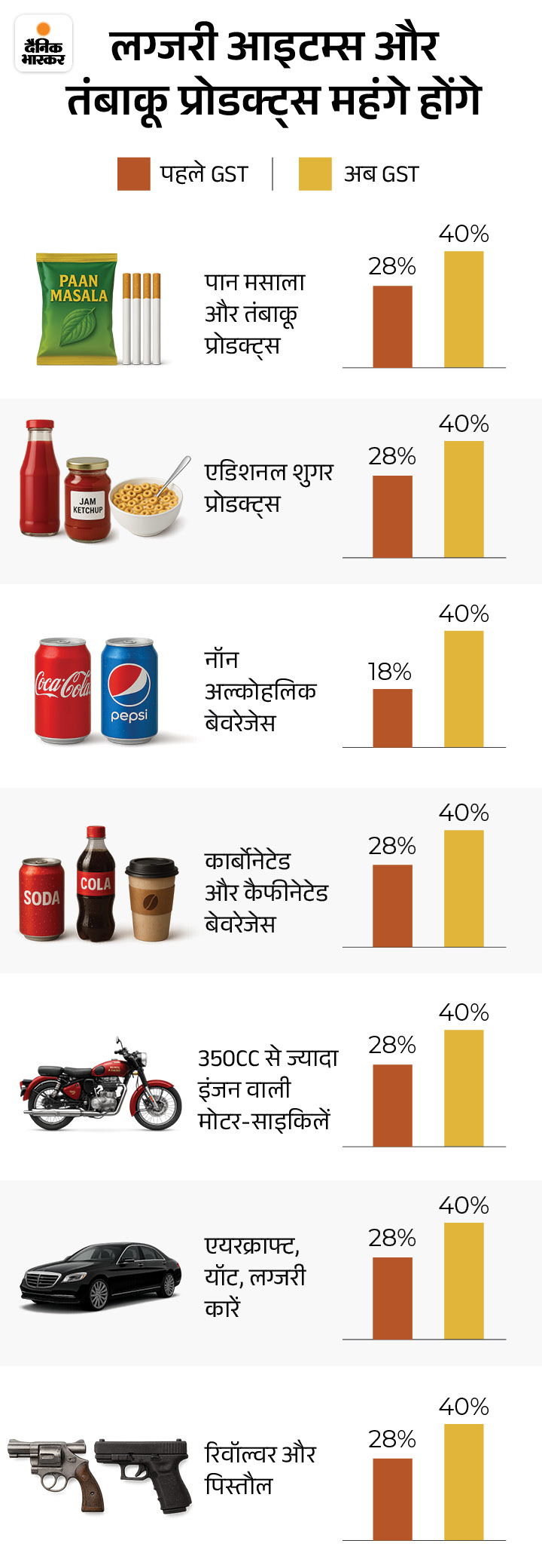 The Finance Minister said that the new slabs will be implemented on the first day of Navratri, ie from 22 September. However, the new 40% GST rate on tobacco goods will not be applicable yet.
