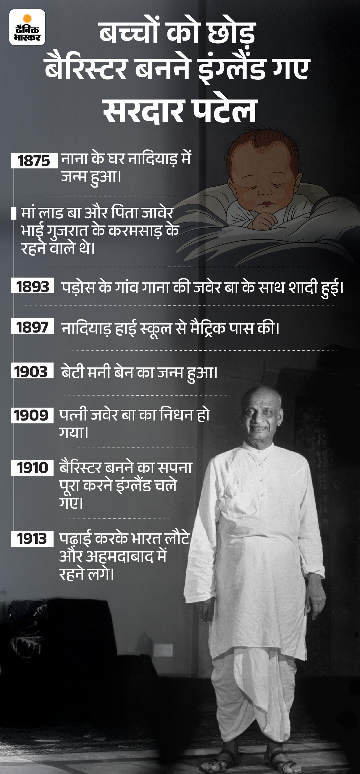 इसके बाद 1910 में 35 साल की उम्र में वल्लभ भाई बैरिस्टर की पढ़ाई के लिए इंग्लैंड गए और 1913 में भारत लौट आए।
