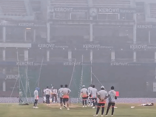 तस्वीर मंगलवार शाम करीब 7 बजे की है। जब टीम इंडिया प्रैक्टिस कर रही थी। इस दौरान इकाना में कोहरा अंदर तक छाया हुआ दिखाई दे रहा था।