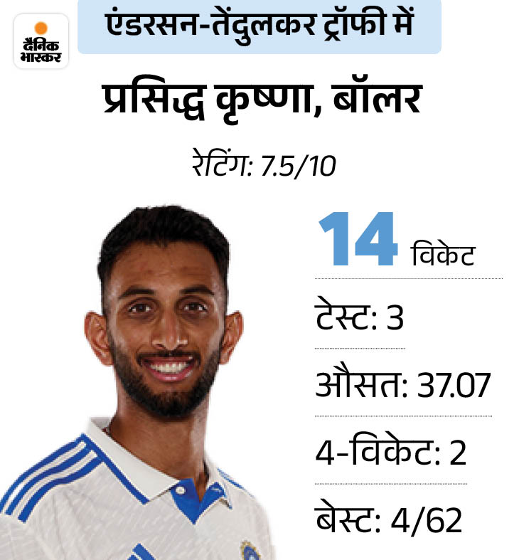 15. Famous Krishna: 7.5/10 The famous Krishna, who took 8 wickets in both innings of the last Test, played an important role in the series draw. He took big wickets of Jack Croly, Jamie Smith, Jamie Overton and Gas Atkinson in the first innings of The Oval Test. Then in the second innings, Ben Docket, Joe Root, Jacob Bethele and Josh Tung increased the pressure on England by sending the pavilion.