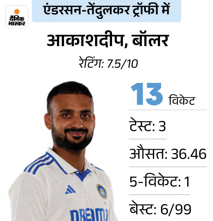 14. Akashdeep: 7.5/10 Fast bowler Akashdeep got a chance after Jaspreet Bumrah’s rest in the second Test. He took 10 wickets in the match and played an important role in winning India. During the third Test at Lord’s Stadium, he proved to be a little expensive during bowling, he was also struggling with injury here. Due to this, his performance remained weak.