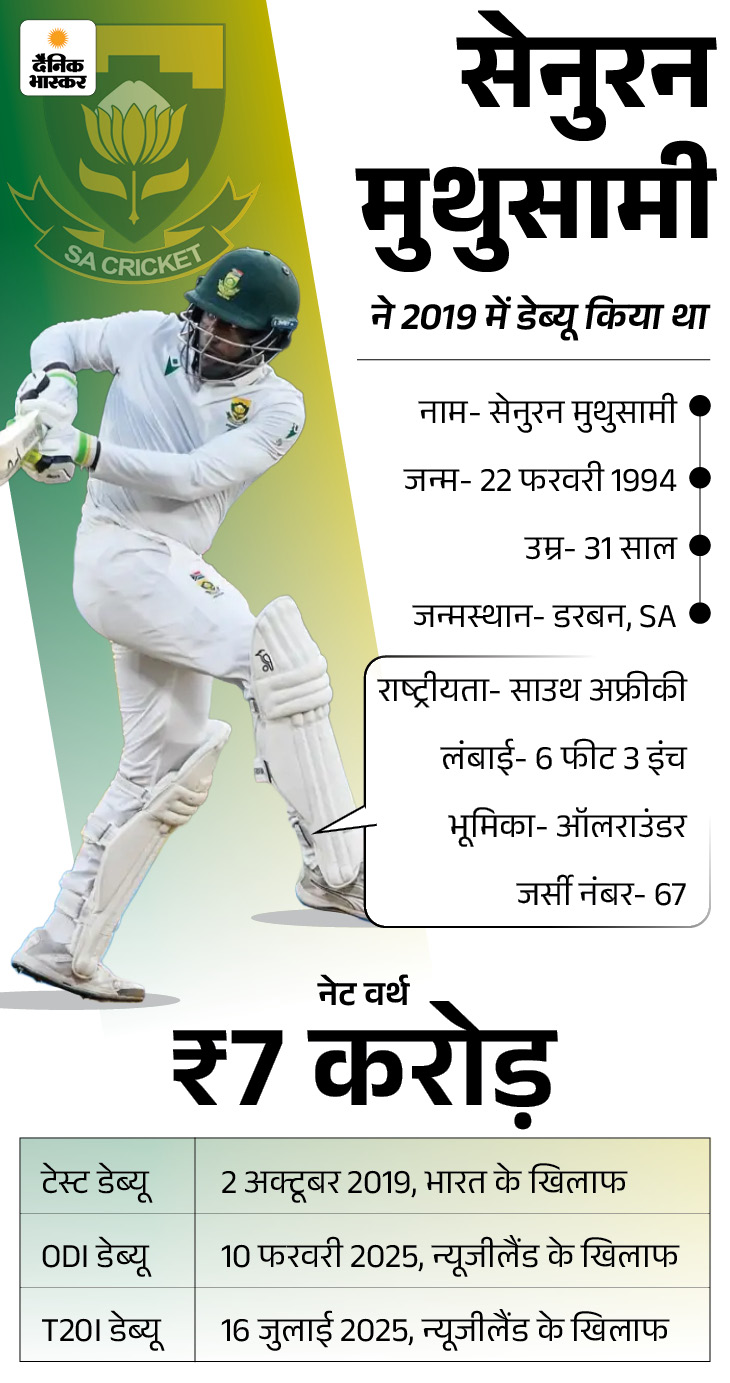 इससे पहले यह उपलब्धि 2019 में क्विंटन डिकॉक ने हासिल की थी। मुथुसामी की इस पारी ने साउथ अफ्रीका को मैच में मजबूत स्थिति में पहुंचा दिया है।