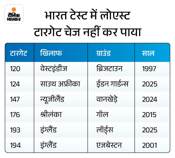 ओवरऑल टेस्ट क्रिकेट में ऐसा दूसरी बार ही हुआ। 1997 ब्रिजटाउन में वेस्टइंडीज के खिलाफ भारत 120 रन का टारगेट चेज नहीं कर पाई थी।