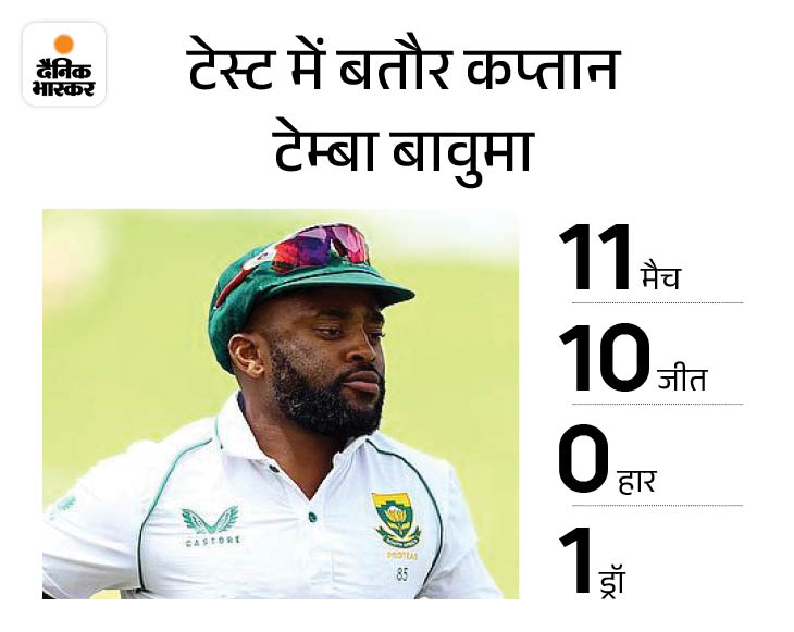 5. बावुमा का टेस्ट में अजेय रिकॉर्ड कायम साउथ अफ्रीकी कप्तान टेम्बा बावुमा का अजेय रिकॉर्ड कायम हैं। उनकी कप्तानी में टीम अब तक कोई भी टेस्ट मैच नहीं हारी है। बावुमा ने अपनी कप्तानी के 11 मैच में 10 जीते हैं। जबकि एक मैच ड्रॉ रहा है।