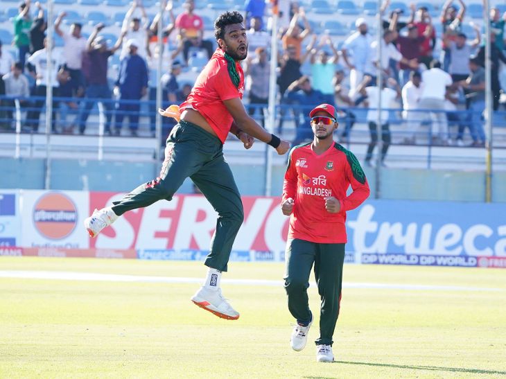 विकेट की खुशी मनाते बांग्लादेश के प्लेयर्स।