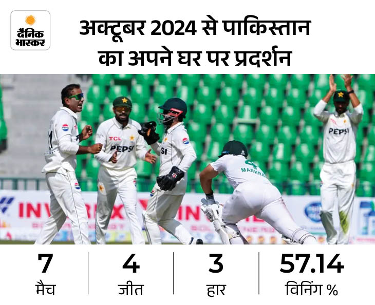 भारत से बेहतर रहा पाकिस्तान का प्रदर्शन पाकिस्तान की टीम हर फॉर्मेट में टीम इंडिया से कमजोर मानी जाती है। लेकिन, पिछले 13 महीनों में पाकिस्तान ने भी अपने घरेलू मैदानों पर भारत से बेहतर खेल दिखलाया है। पाकिस्तान ने इस पीरियड में अपने घर में 7 टेस्ट मैच खेले। इसमें से 4 में उसे जीत मिली और 3 में ही हार झेलनी पड़ी।