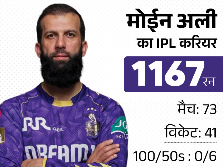 KKR ने किया था रिलीज IPL 2025 के मेगा ऑक्शन में कोलकाता नाइट राइडर्स ने मोईन को 2 करोड़ की बेस प्राइस पर खरीदा था। IPL 2026 से पहले KKR ने 9 खिलाड़ियों को रिलीज किया, जिनमें मोईन भी शामिल थे। 2025 सीजन में उनका प्रदर्शन साधारण रहा। उन्होंने 6 मैचों में सिर्फ 6 रन बनाए और 6 विकेट हासिल किए।