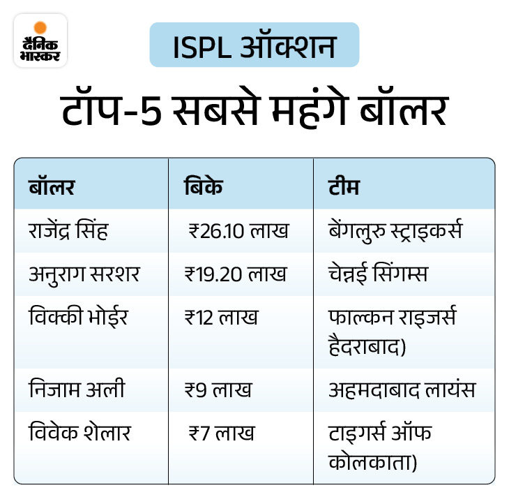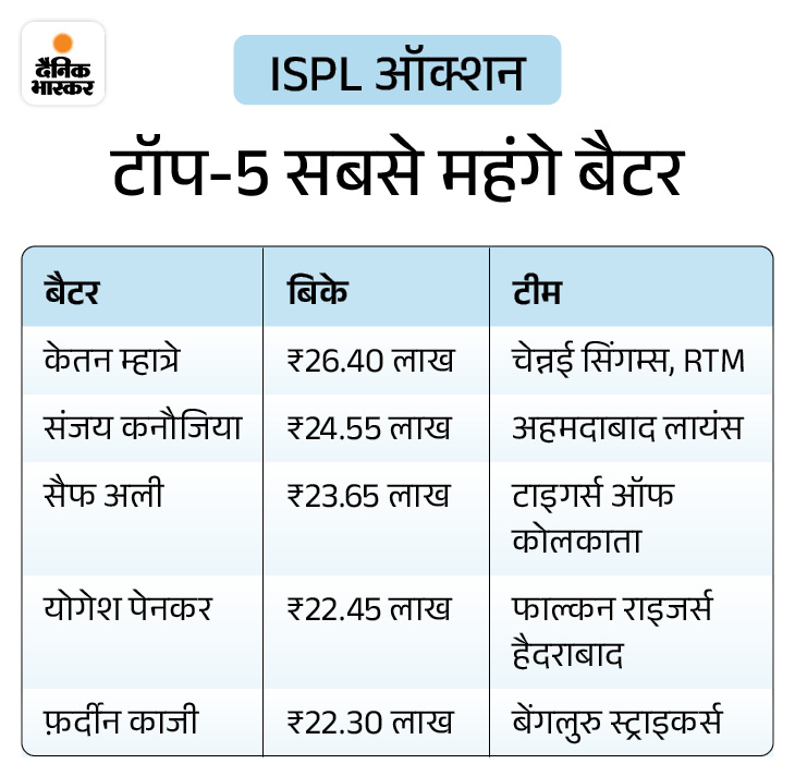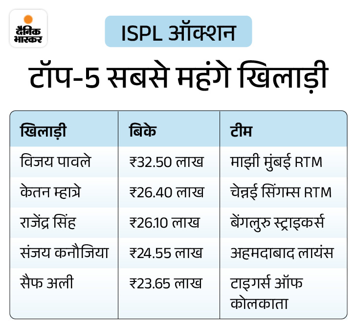 ISPL 9 जनवरी से 6 फरवरी के बीच सूरत में खेला जाएगा। इसमें आठ टीमें हिस्स लेंगी। मुंबई में ऑक्शन हुआ। इस अवसर पर सलमान मान, सैफ अली और अक्षर कुमार भी मौजूद रहे। इस बार ऑक्शन में 101 शहरों के 408 खिलाड़ी उतरे। जिसमें 144 खिलाड़ियों पर करीब ₹10 करोड़ खर्च किए गए। विजय पावले ऑक्शन के सबसे महंगे खिलाड़ी रहे। उन्हें पिछली बार की चैंपियन माझी मुंबई ने ₹32.50 लाख में खरीदा।