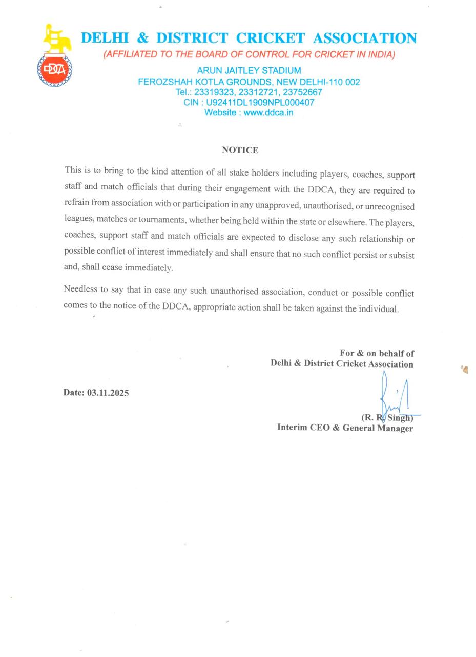 श्रीनगर में आयोजित इंडियन हेवन प्रीमियर लीग (IHPL) में विवाद के बाद DDCA ने अपने क्रिकेटर, सपोर्ट स्टाफ और मैच ऑफिशियल को आदेश दिया है कि वे किसी भी अनाधिकृत टूर्नामेंट में हिस्सा न लें।