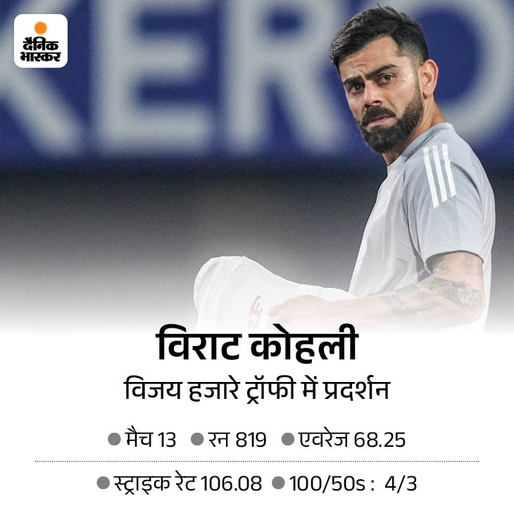 कोहली ने 2010 में आखिरी मैच खेला था कोहली ने विजय हजारे ट्रॉफी में पिछला मैच फरवरी 2010 में सर्विसेज के खिलाफ खेला था। टूर्नामेंट 24 दिसंबर से अहमदाबाद में शुरू होगा। कोहली अब टीम इंडिया के लिए सिर्फ वनडे फॉर्मेट में खेलते हैं। वे टी-20 क्रिकेट से 29 जून 2024 और टेस्ट से 12 मई 2025 को रिटायर हो चुके हैं।