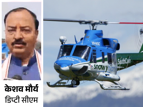 केशव को 18 साल पुराना हेलिकॉप्टर मिला:3 साल से मरम्मत तक नहीं हुई; अखिलेश बोले- नया वाला मिलना चाहिए