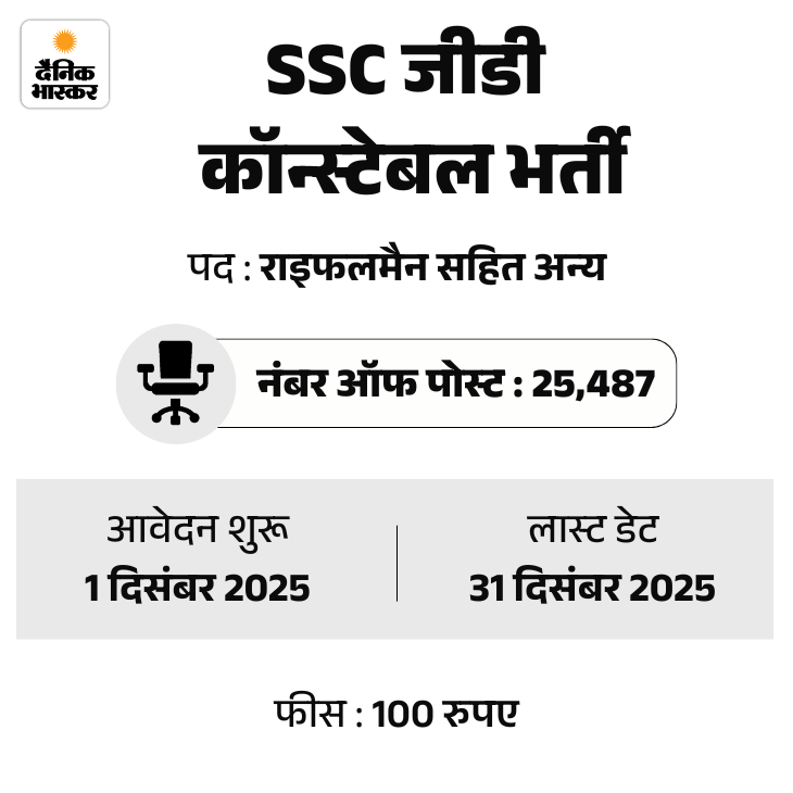 कर्मचारी चयन आयोग (SSC) में केंद्रीय सशस्त्र पुलिस बलों (CAPFs) और SSF में कॉन्स्टेबल जीडी और असम राइफल्स परीक्षा, 2026 में राइफलमैन (GD) के लिए रजिस्ट्रेशन प्रोसेस 1 दिसंबर, 2025 से शुरू है। SSC की ओर से अब इस भर्ती के लिए फोर्स वाइज डिटेल जारी कर दी गई है।