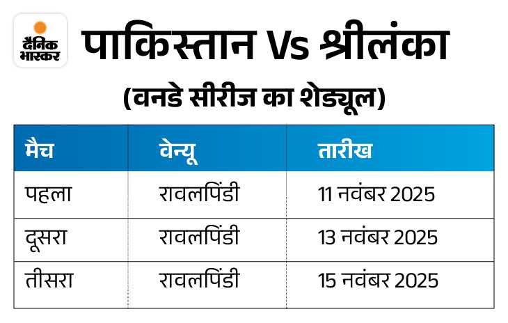 श्रीलंकाई क्रिकेट बोर्ड (SLC) ने शुक्रवार को पाकिस्तान दौरे के लिए अपनी टीम का ऐलान किया। टीम को वहां 3 वनडे और टी-20 मैचों की ट्राई सीरीज खेलनी है। वनडे सीरीज का पहला मुकाबला 11 नवंबर को रावलपिंडी में खेला जाएगा। वनडे सीरीज के सभी मुकाबले रावलपिंडी में होंगे।