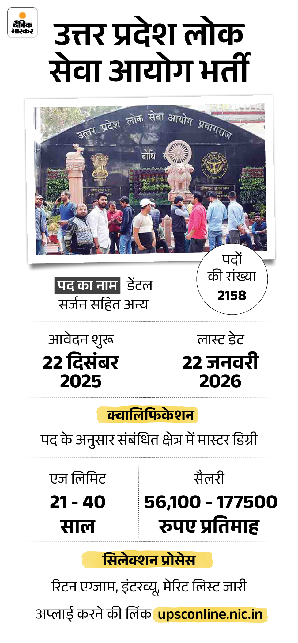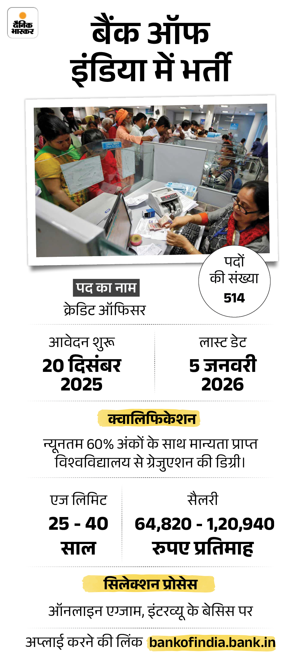 इस हफ्ते देशभर के अलग-अलग विभागों में 7,767 पदों पर भर्तियां निकली हैं। अगर आप भी इन पदों के लिए अप्लाई करना चाहते हैं, तो इन 5 नौकरियों की डिटेल्ड जानकारी 5 ग्राफिक्स के जरिए जानिए :