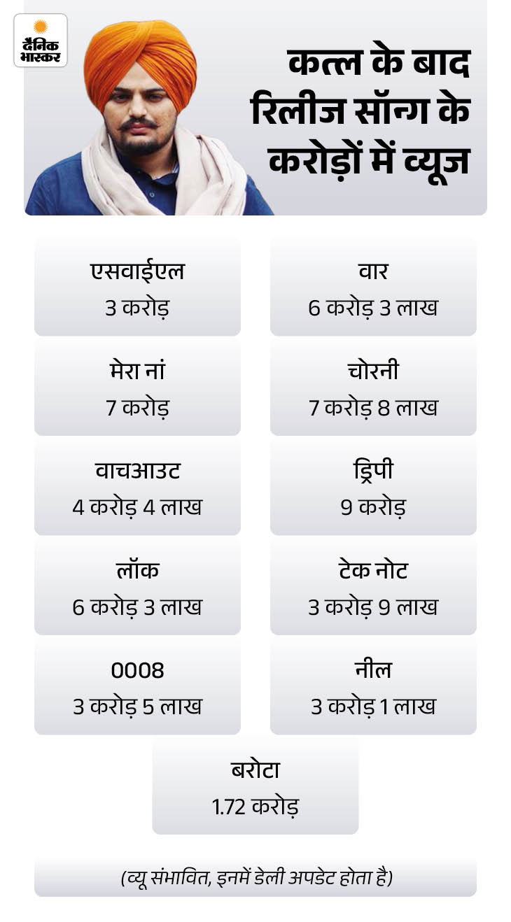सिद्धू मूसेवाला का नया सॉन्ग रिलीज, 3 घंटे में 2 मिलियन व्यूज, 7 लाख से ज्यादा लाइक; कत्ल के बाद 9वां गाना