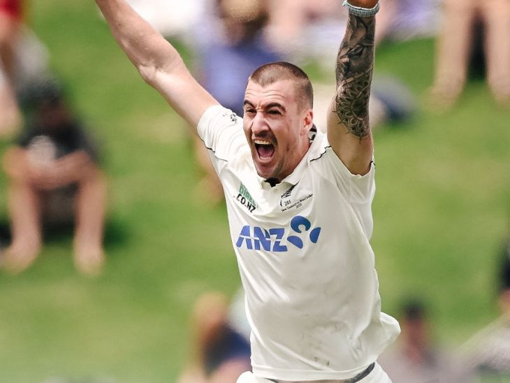जैकब डफी (सेलिब्रेट करते हुए) ने पहली पारी में 1 और दूसरी पारी में 5 विकेट लिए।
