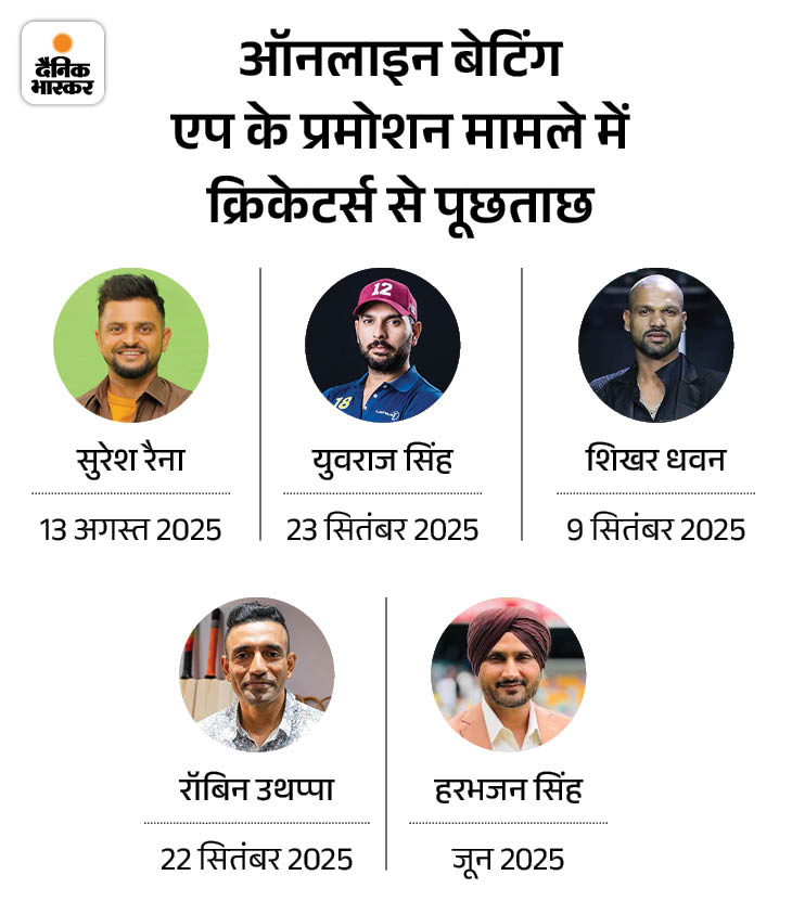 23 सितंबर: युवराज सिंह दिल्ली ED ऑफिस पहुंचे। यहां अधिकारियों ने उनसे ऑनलाइन बेटिंग एप (1xBet) के प्रमोशन मामले में 7 घंटे पूछताछ की।