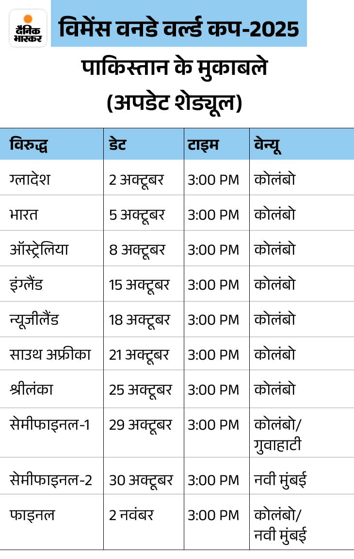 All Pakistan matches will be on hybrid models All Pakistan matches will be played in Sri Lanka on hybrid models. According to the hybrid agreement between the Board of Control for Cricket in India (BCCI) and the Pakistan Cricket Board (PCB), the Pakistan team will play all their matches in Neutral Venue Colombo. These include matches against Bangladesh (2 October), England (15 October), New Zealand (18 October), South Africa (21 October) and Sri Lanka (24 October).