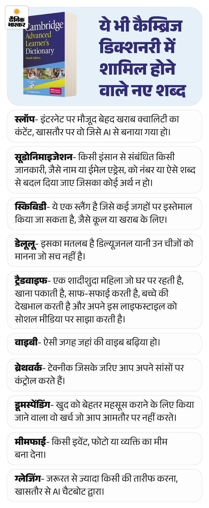 कैम्ब्रिज डिक्शनरी के कॉलिन मैकइन्तोश कहते हैं, ‘पैरासोशल 2025 के दौर का माहौल, सोच या पॉपुलर ट्रेंड्स को बहुत अच्छी तरह जाहिर करता है। भाषा के बदलने का यह एक शानदार उदाहरण है। इस तरह के शब्द जो एक समय पर कुछ एक्सपर्ट्स ही इस्तेमाल किया करते थे, अब मेनस्ट्रीम हो गए हैं। आज के समय पर लाखों लोग पैरासोशल रिश्तों में हैं। जो लोग नहीं है वो इस आइडिया के बारे में जानना चाहते हैं। कैम्ब्रिज डिक्शनरी की वेबसाइट पर भी देखा गया कि इस शब्द को बहुत से लोगों ने सर्च किया है।’