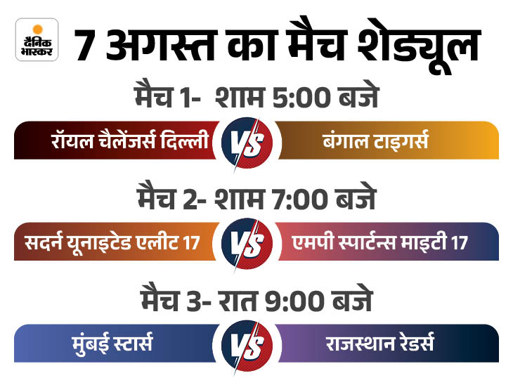- Dubey said that the first T-10 league will start in Jaipur with the match between Royal Challengers Delhi and Bengal Tigers at 5 pm on August 7. Three matches will be played every day in the league from 7 to 11 August. The knockout phase will be on 12 August. It will play qualifier 1, eliminator and qualifier 2. The final will be held on August 13.