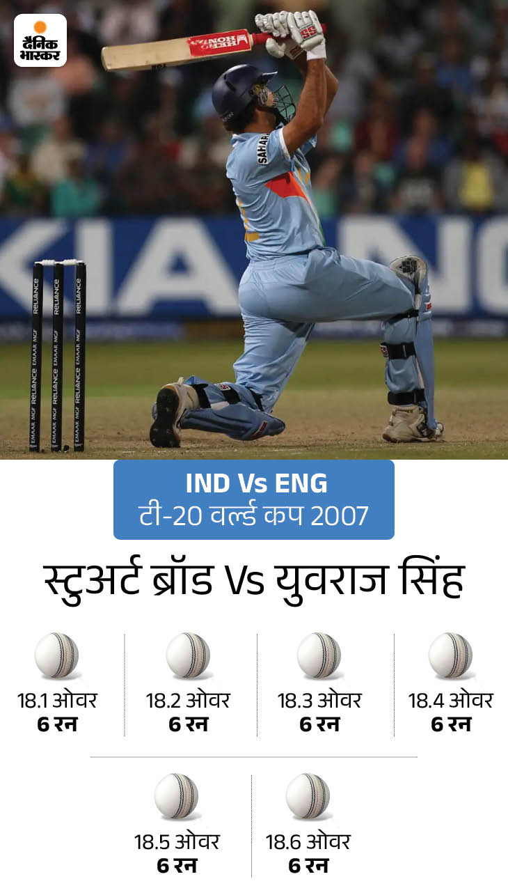 स्टुअर्ट ब्रॉड के ओवर में युवराज सिंह ने 6 छक्के लगाए थे 2007 के टी-20 वर्ल्ड में इंग्लैंड के खिलाफ युवराज सिंह ने 6 छक्के लगाए थे। उन्होंने एंड्रयू फ्लिंटॉफ से बहस के बाद स्टुअर्ट ब्रॉड के ओवर की लगातार 6 बॉल पर 6 छक्के जड़ें थे।
