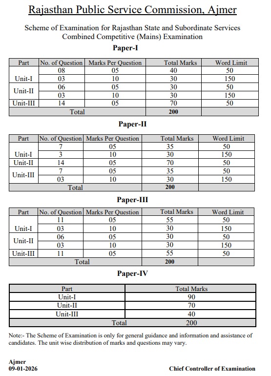 आयोग के परीक्षा नियंत्रक आशुतोष गुप्ता ने बताया- आगामी आरएएस परीक्षा की तैयारी करने वाले अभ्यर्थियों की सुविधा के लिए विस्तृत पाठ्यक्रम वेबसाइट पर उपलब्ध करा दिया है। सिलेबस में 25% बदलाव किया है। पुरानी चीजों को हटा नई चीजों को जोड़ा गया है। अभ्यर्थियों को इससे फायदा मिलेगा।