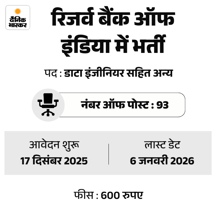 उम्मीदवार ऑफिशियल वेबसाइट opportunities.rbi.org.in पर जाकर आवेदन कर सकते हैं। यह भर्ती फुल टाइम कॉन्ट्रेक्ट बेसिस पर की जाएगी।