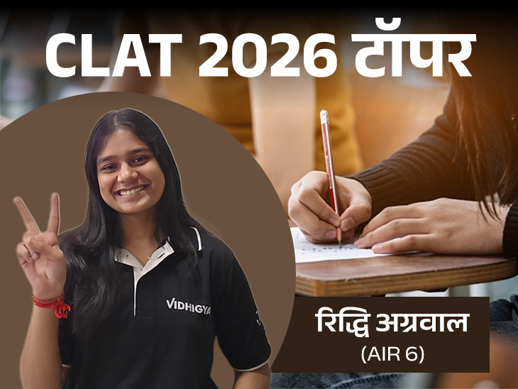 कंसोर्टियम ऑफ नेशनल लॉ यूनिवर्सिटीज यानी CNLUs ने कॉमन लॉ एडमिशन टेस्ट (CLAT) 2026 के रिजल्ट जारी कर दिए हैं। इंदौर की रिद्धि अग्रवाल ने ऑल इंडिया रैंक 6 हासिल की है। ऑल इंडिया विमेंस रैंक में भी रिद्धि दूसरे स्थान पर रही हैं। 112 मार्क्स के साथ गिताली गुप्ता ने एग्जाम में टॉप किया।